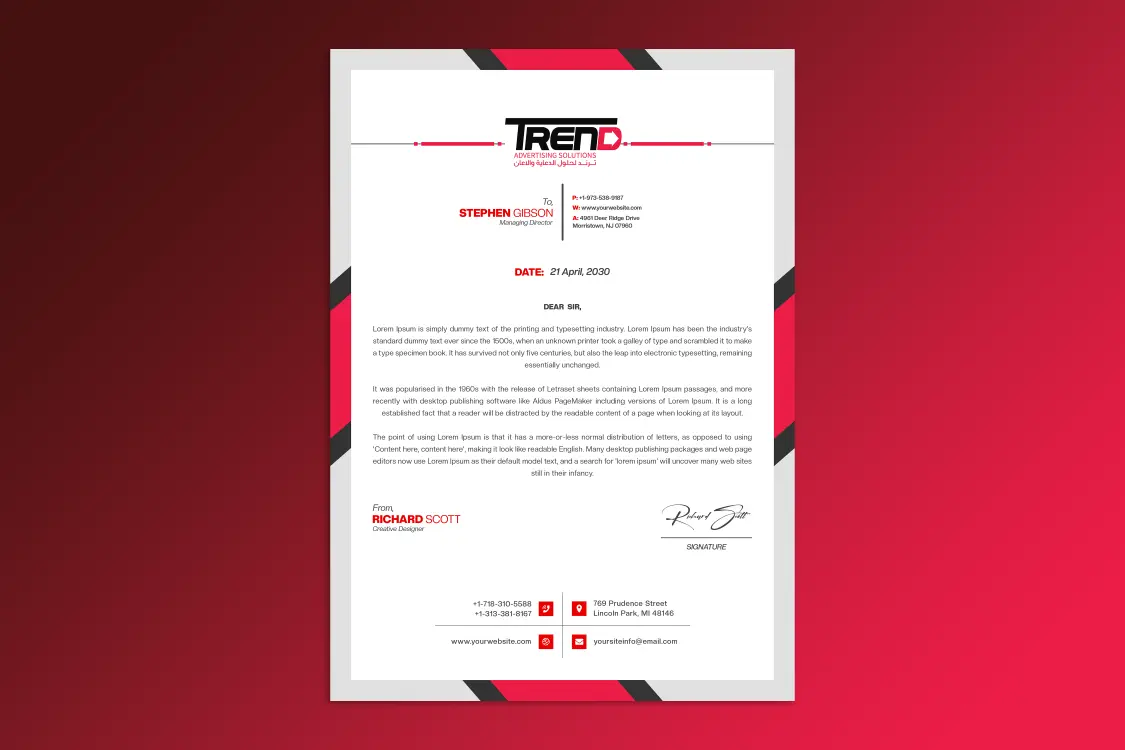 ورق المراسلات يعتبر وسيلة اتصال هامة بين المؤسسات وبعضها حيث يضيف لمسة احترافية تتناسب مع الخطابات الرسمية ومراسلات العمل والجهات الحكومية كذلك تعطي هوية لك و لشركتك، تقوم بتوفير الوقت حيث تعد صيغة رسمية موحدة للطلبات المتكررة بصورة مستمرة .